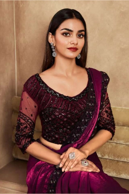 Sky Glass Feel Designer Chiffon Silk Saree With Fancy Work