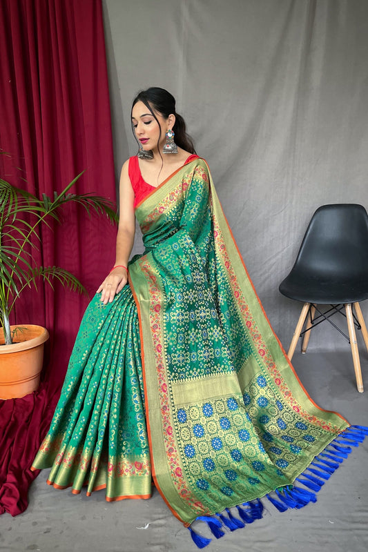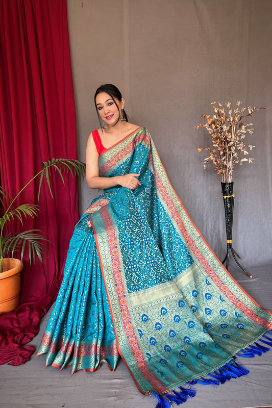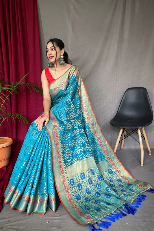 Aqua Green Meenakari Zari Weaving Patola Silk Saree