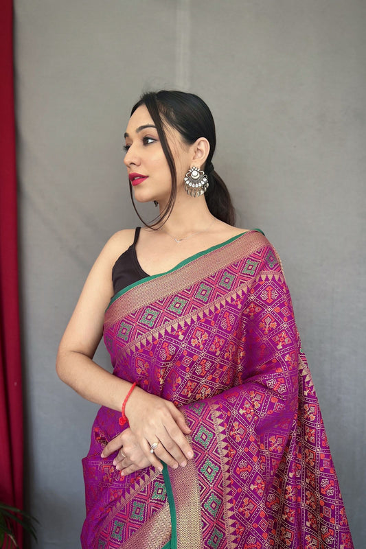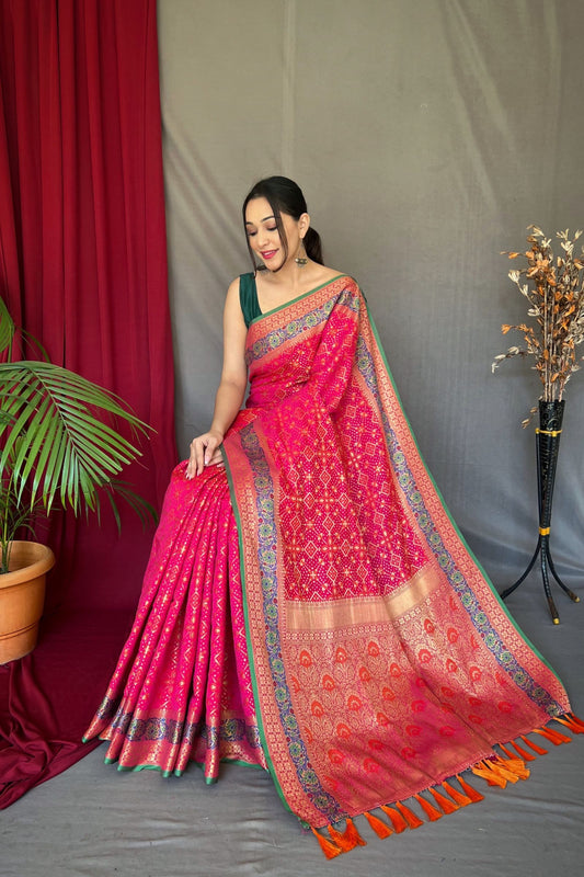 Fuchsia Meenakari Zari Weaving Patola Silk Saree