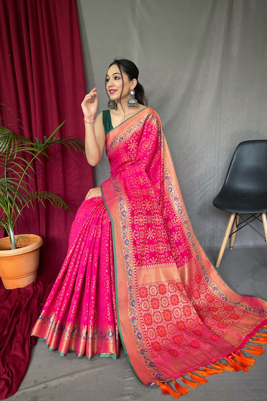 Bright Pink Meenakari Zari Weaving Patola Silk Saree
