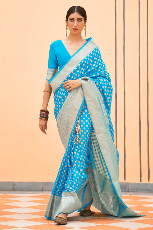 Azure Turquoise Zari Woven Paithani Silk Saree