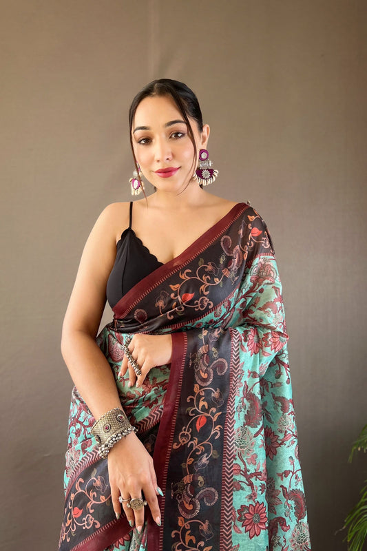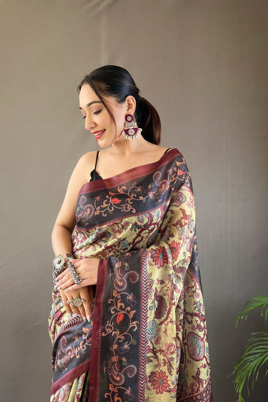 Butterscotch Yellow Italian Digital Printed Cotton Saree