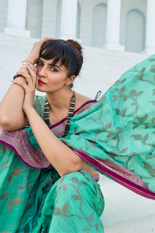 Mint Green Banarasi Pure Satin Silk with Graceful Zari Work Border