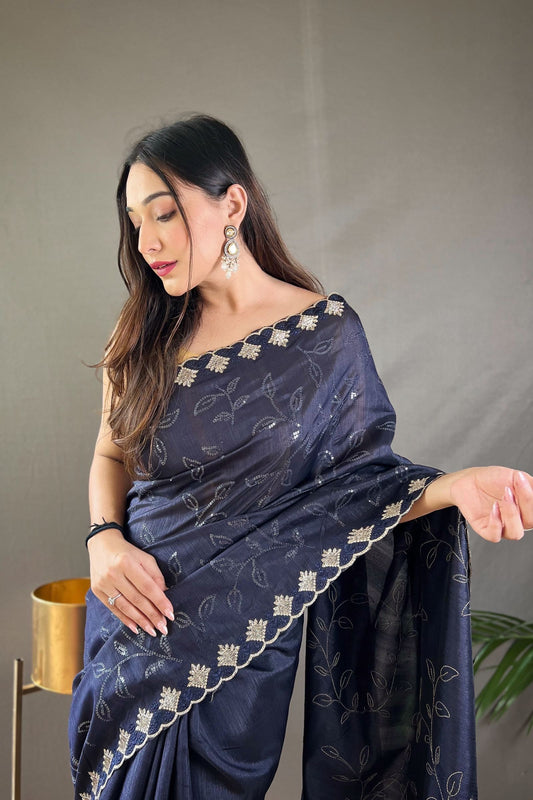 Indigo Blue Designer Banarasi Bland Soft Silk Saree with Zari Pallu