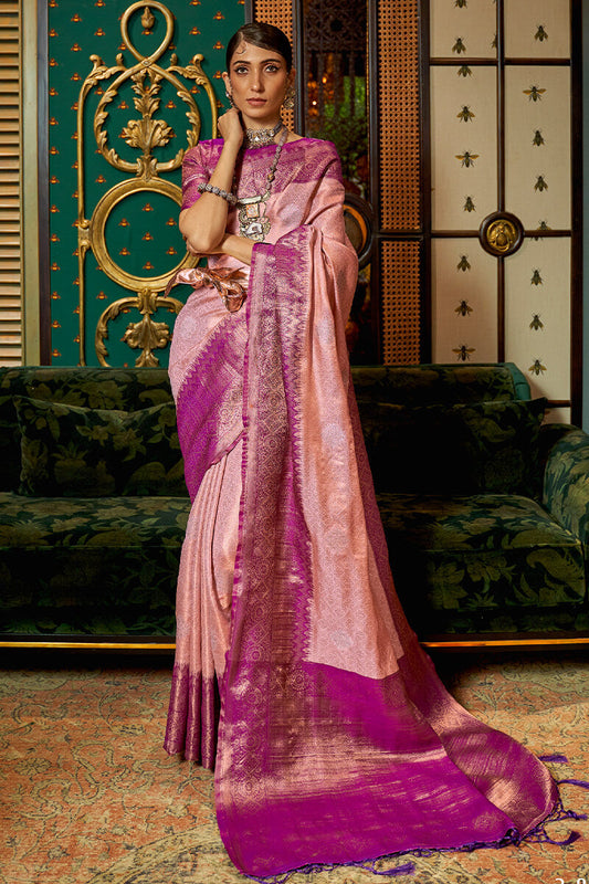 Faded Pink And Magenta Kanjivaram Silk Saree
