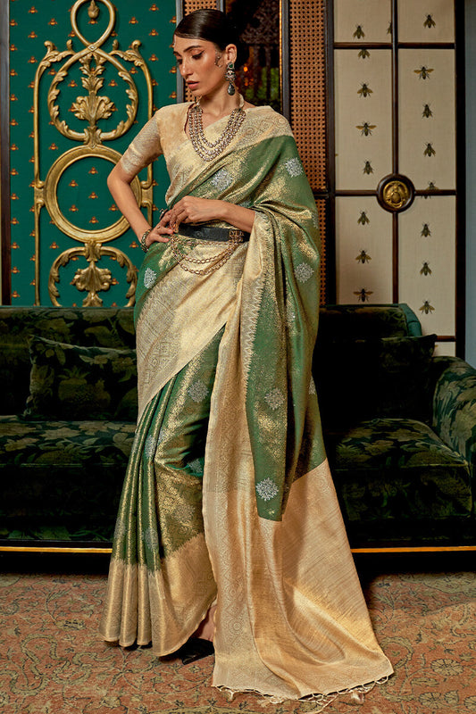 Rifle Green And Beige Kanjivaram Silk Saree