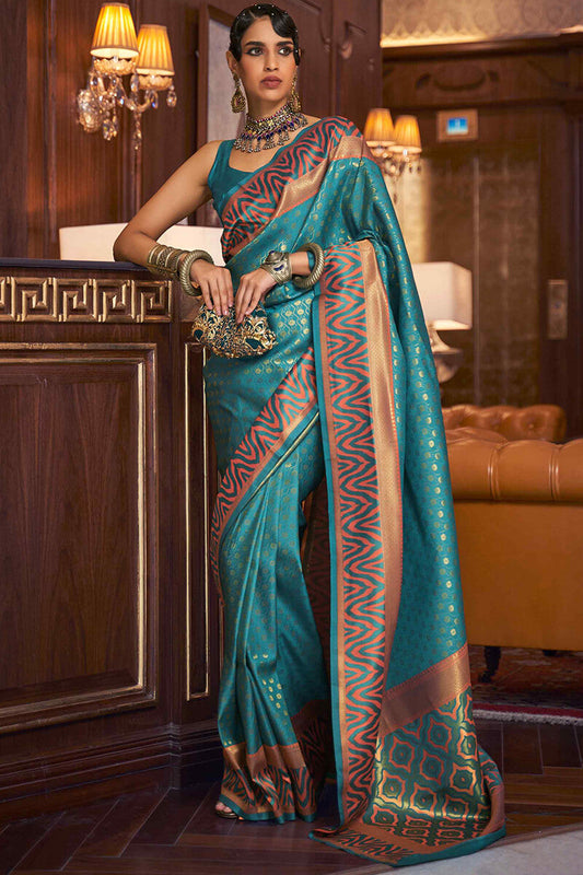 Bright Sky Blue Kanjivaram Silk Saree
