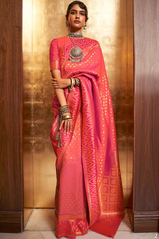 Coral Peach Kanjivaram Silk Saree