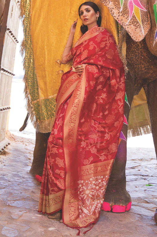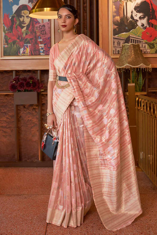 Warm Pink Banarasi Silk Saree With Sequence Work
