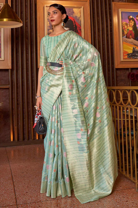 Dusk Blue Banarasi Silk Saree With Sequence Work