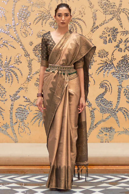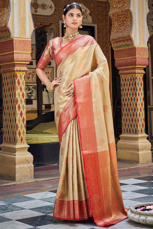 Pinkish Beige Woven Kanjivaram Silk Saree