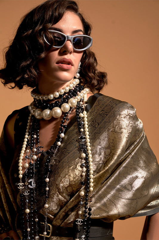 Creole Black Zari Woven Kanjivaram Silk Saree