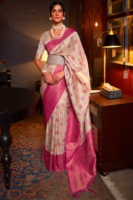 Pink Designer Gold Flake Silk Saree With Fancy Work