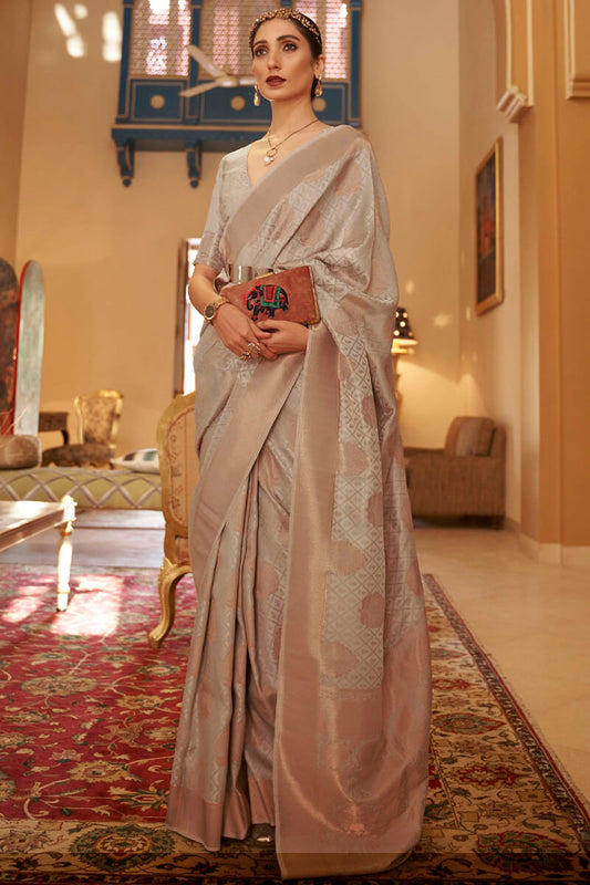 Brown Grey Copper Zari Weaving Banarasi Silk Saree
