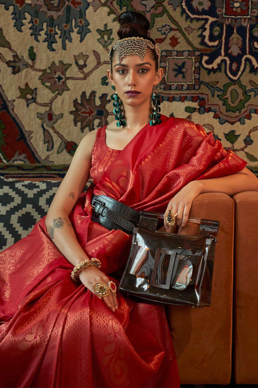 Shiraz Red Copper Zari Woven Kanjivaram Silk Saree