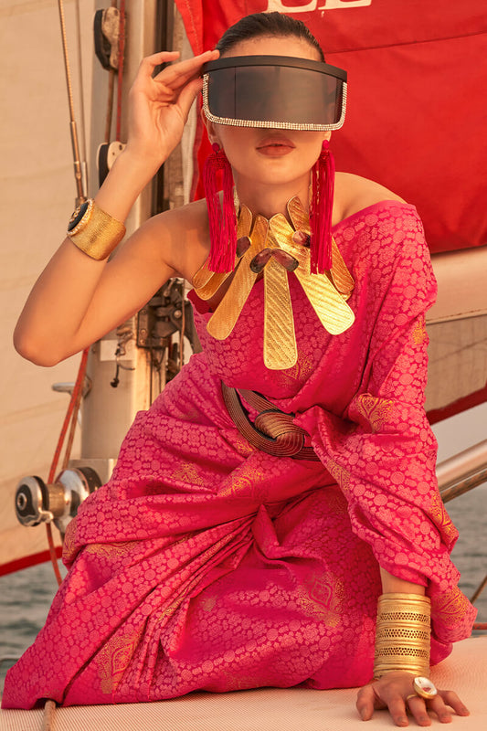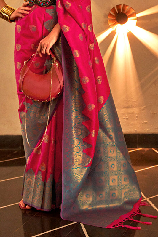 Carmine Pink Zari Woven Handloom Silk Saree