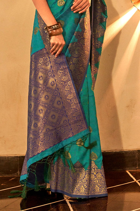 Teal Blue Zari Woven Handloom Silk Saree