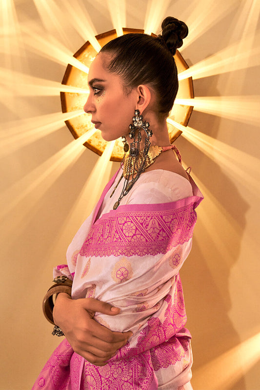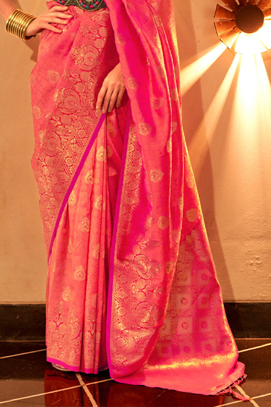 Cherry Pink Zari Woven Handloom Silk Saree