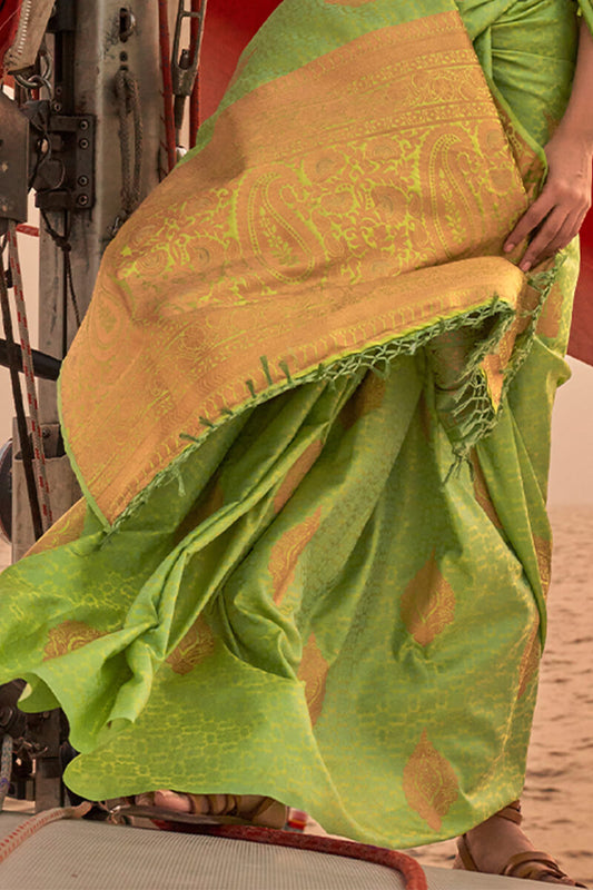 Dark Spring Green Zari Woven Handloom Silk Saree