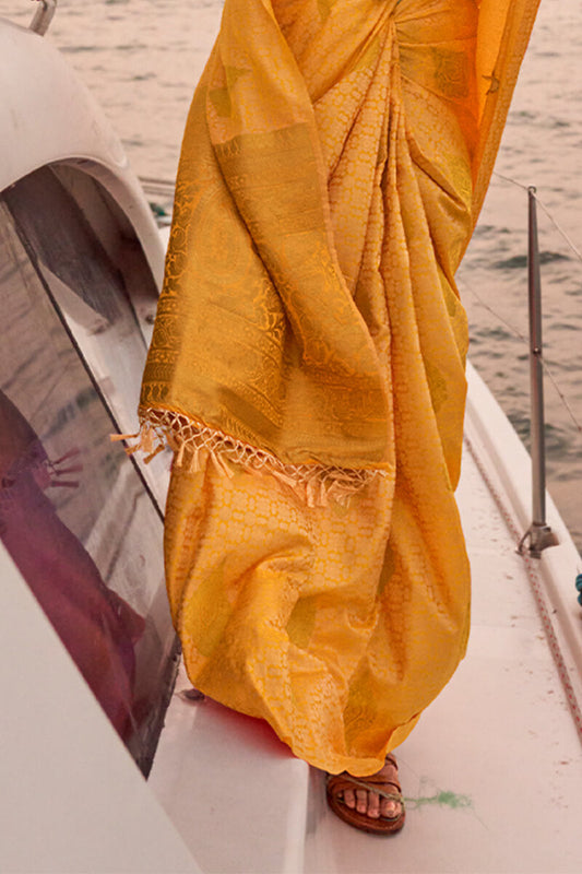 Mustard Yellow Satin Dual Tone Silk Saree