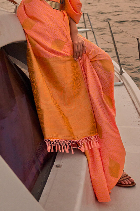 Pinkish Orange Satin Dual Tone Silk Saree