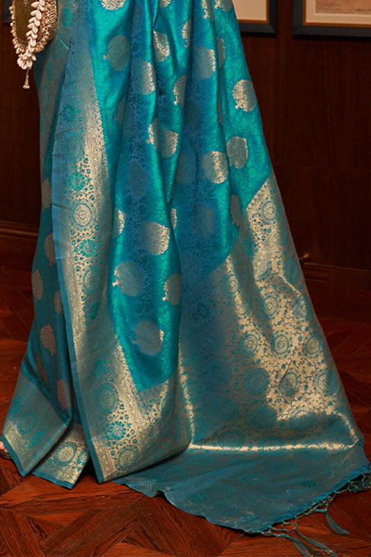 Cyan Blue Zari Woven Kanjivaram Silk Saree