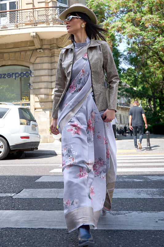 Rhino Blue Zari Woven Kanjivaram Silk Saree