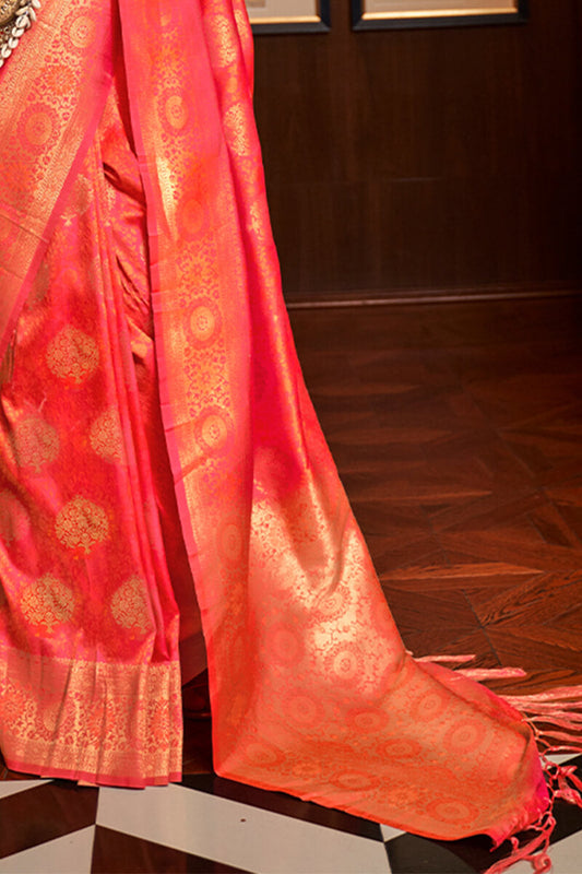 Raspberry Pink Zari Woven Kanjivaram Silk Saree