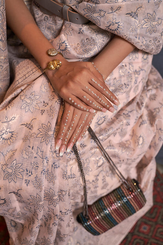 Pavlova Beige Zari Woven Linen Silk Saree