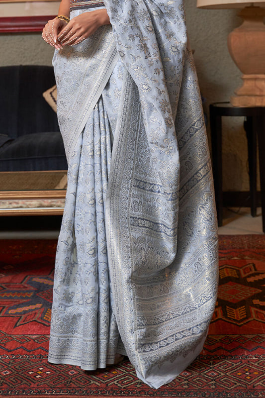 Ice Blue Kashmiri Modal Silk Saree