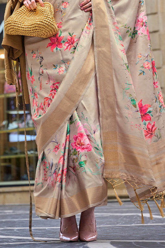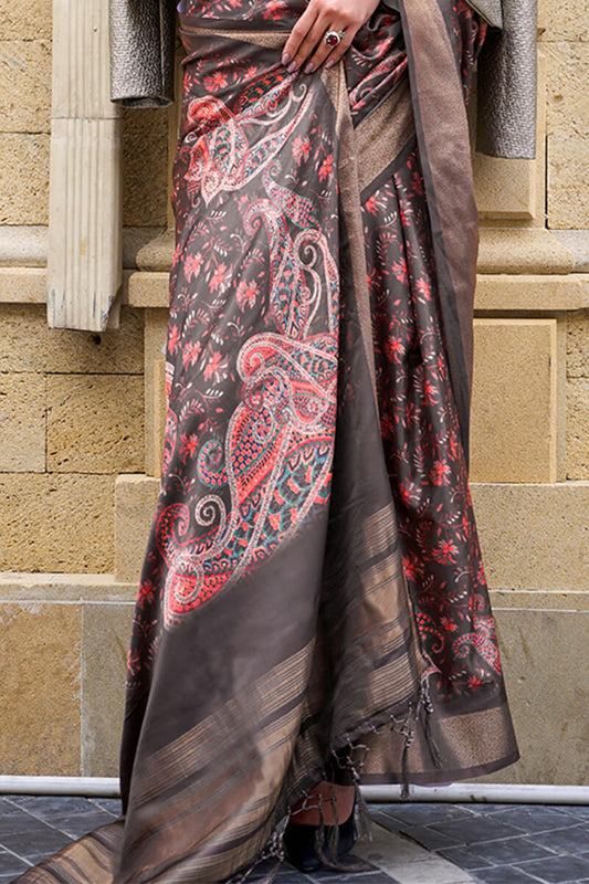 Friar Grey Kashmiri Modal Pashmina Silk Saree