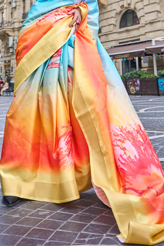 Sweet Blue Kashmiri Modal Pashmina Silk Saree