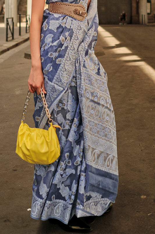 Marble Blue Lucknowi Chikankari Saree