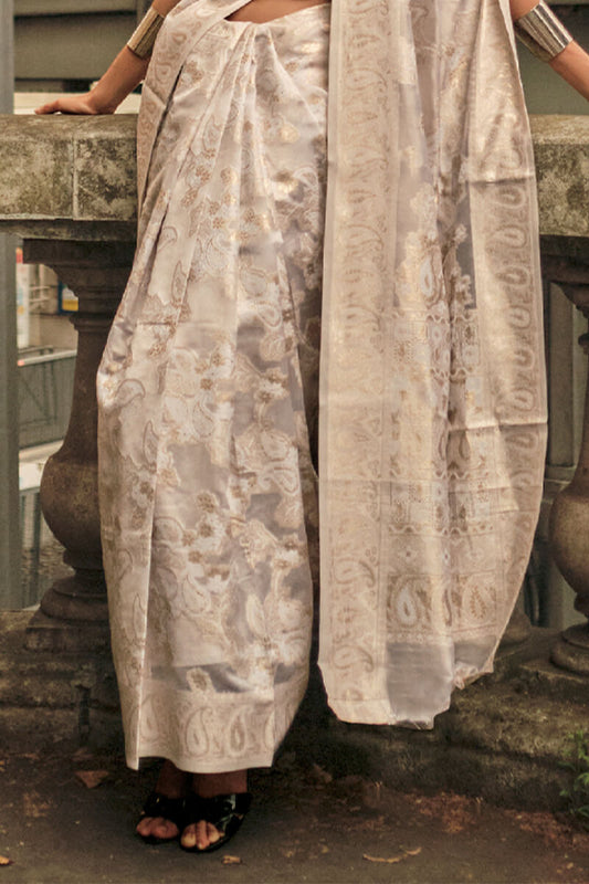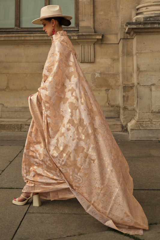 Fawn Beige Zari Woven Handloom Banarasi Silk Saree