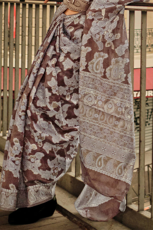 Woody Brown Zari Woven Handloom Banarasi Silk Saree
