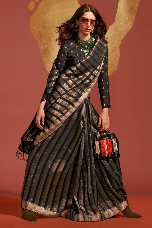 Almond Beige Kashmiri Weaving Organza Silk Saree