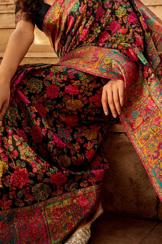 Mulberry Purple Kashmiri Weaving Organza Silk Saree