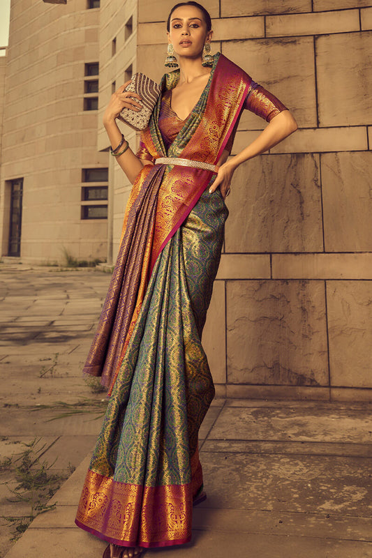 Kelp Green Woven Banarasi Brocade Silk Saree