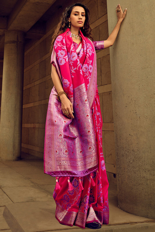 Razzmatazz Pink Banarasi Satin Silk Saree
