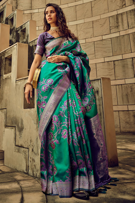 Shamrock Green Banarasi Satin Silk Saree