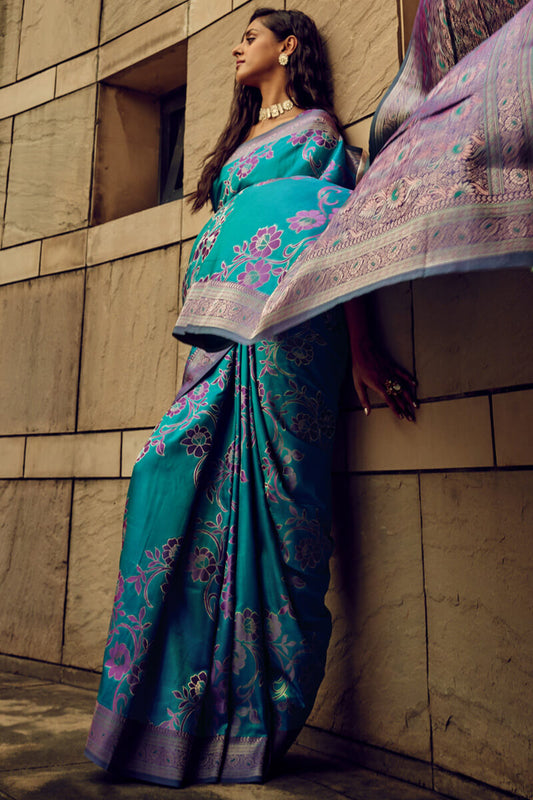 Sherpa Blue Banarasi Satin Silk Saree