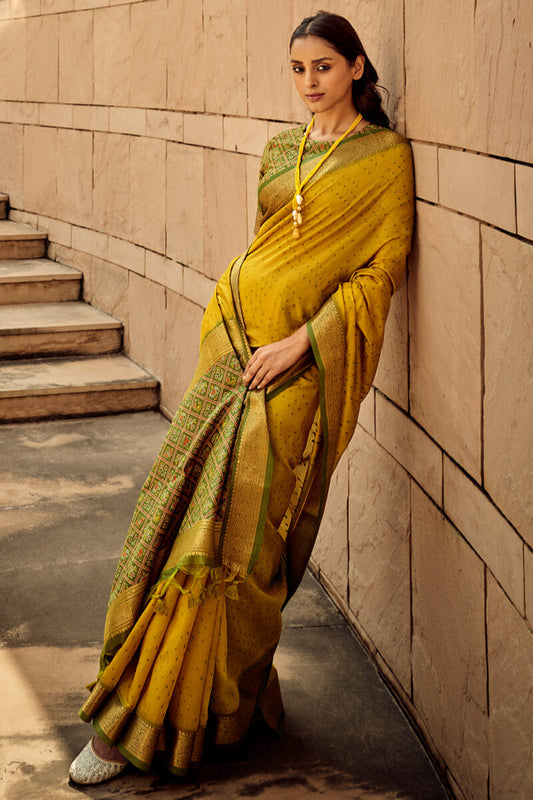 Tangerine Yellow Patola Silk Saree