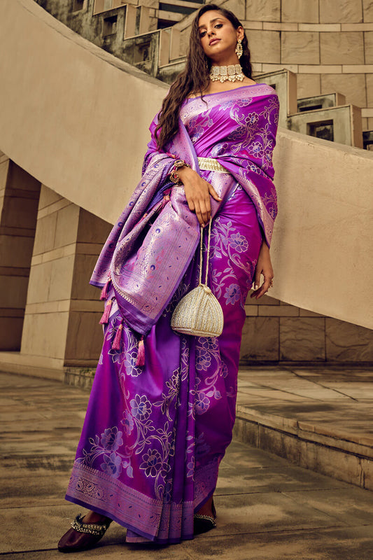 Rosy Pink Zari Woven Banarasi Silk Saree