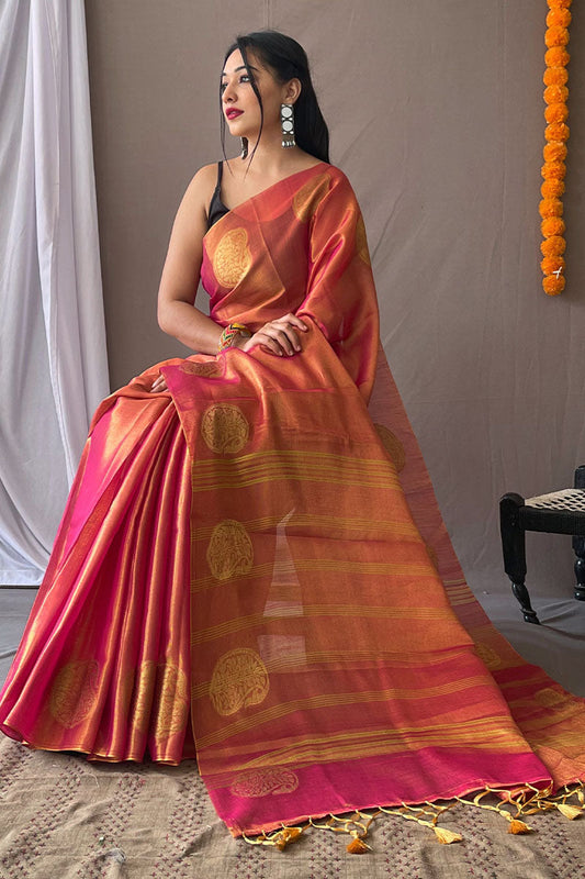 Rosy Brown Kalamkari Printed Tussar silk Saree