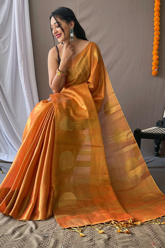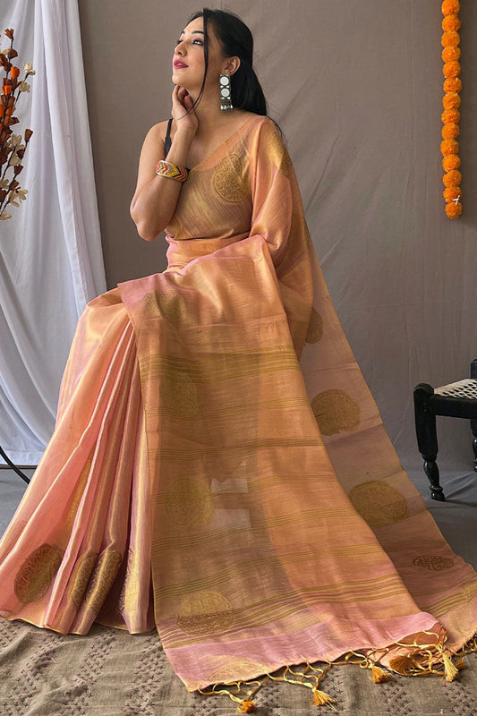 Clay Brown Kalamkari Printed Tussar silk Saree