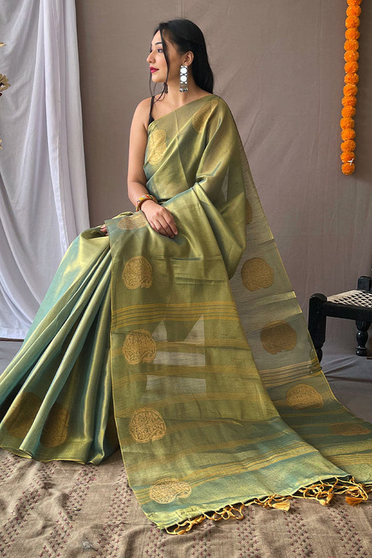 Shadow Green Kalamkari Printed Tussar silk Saree