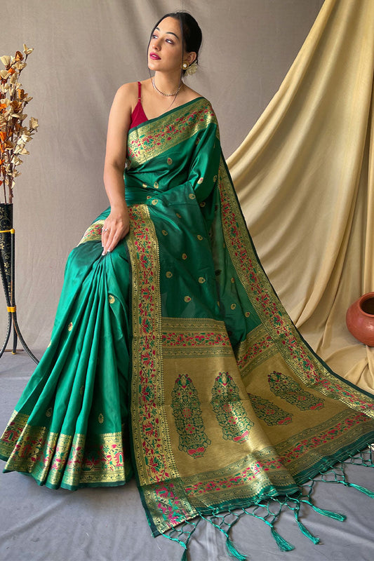 Dark Spring Green Zari Woven Paithani Silk Saree
