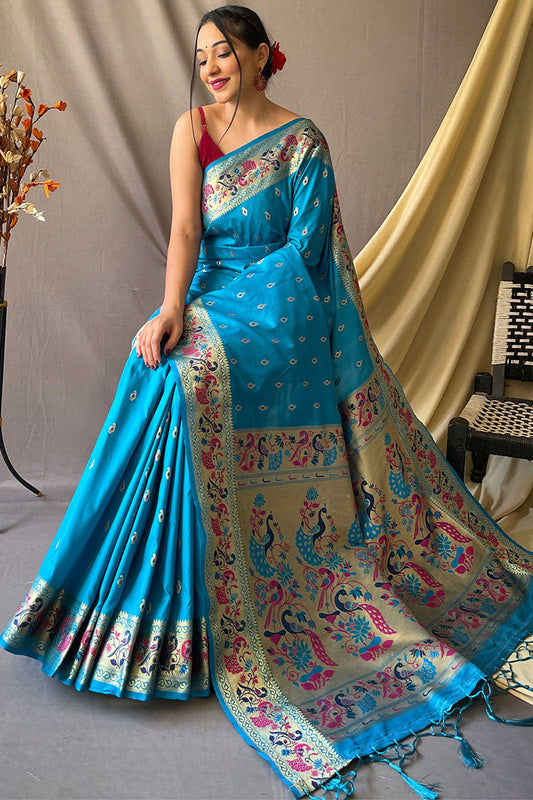 French Blue Zari Woven Paithani Silk Saree
