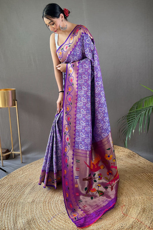 Eminence Purple Lucknowi Woven Paithani Silk Saree