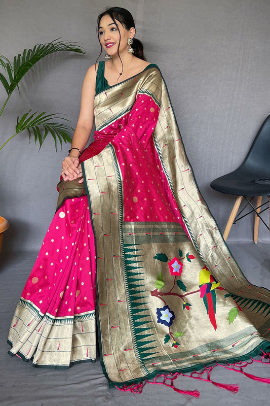 Folly Pink Zari Woven Paithani Silk Saree